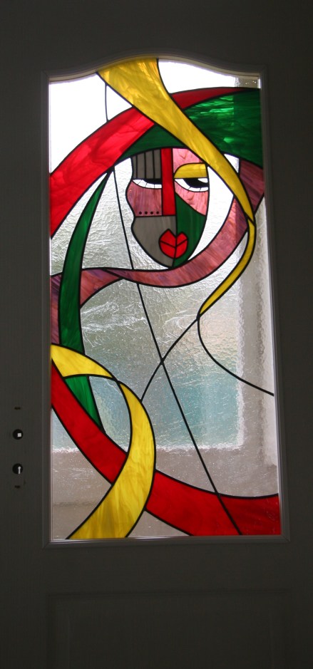 Vitrail au plomb type ethnique Dimensions 110*50 cm à l’intérieur d’une porte intérieure