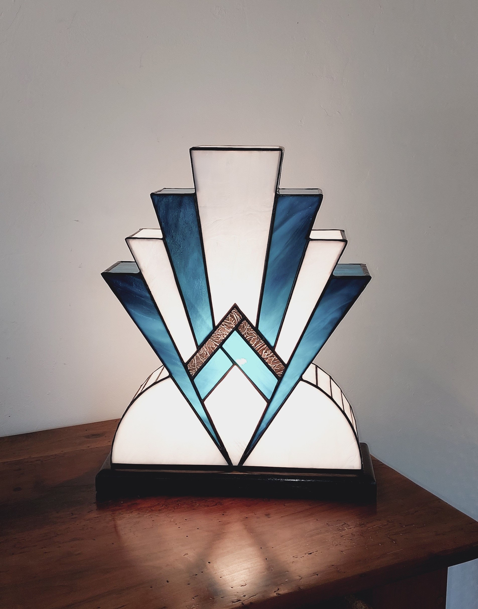 Grande Lampe Art Déco en véritable Vitrail Tiffany « 1922 » Cobalt (proportions voir photo n°5)