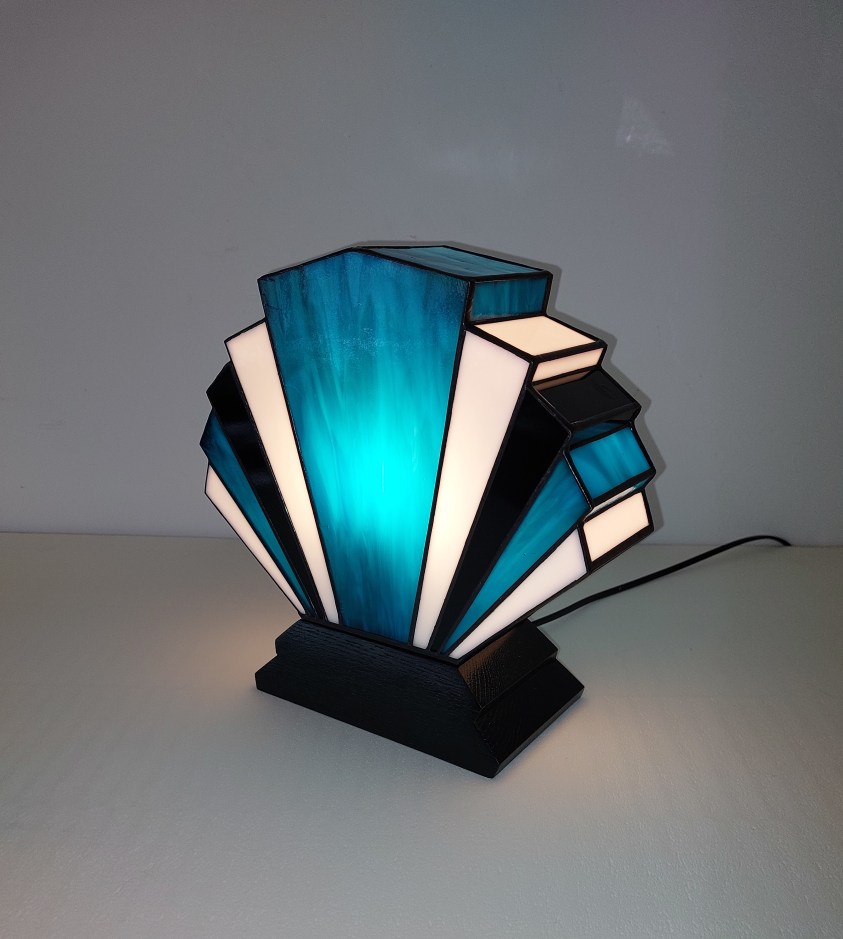 Lampe Art Déco « 1928 Flabellum Cobalt » en véritable Vitrail Tiffany