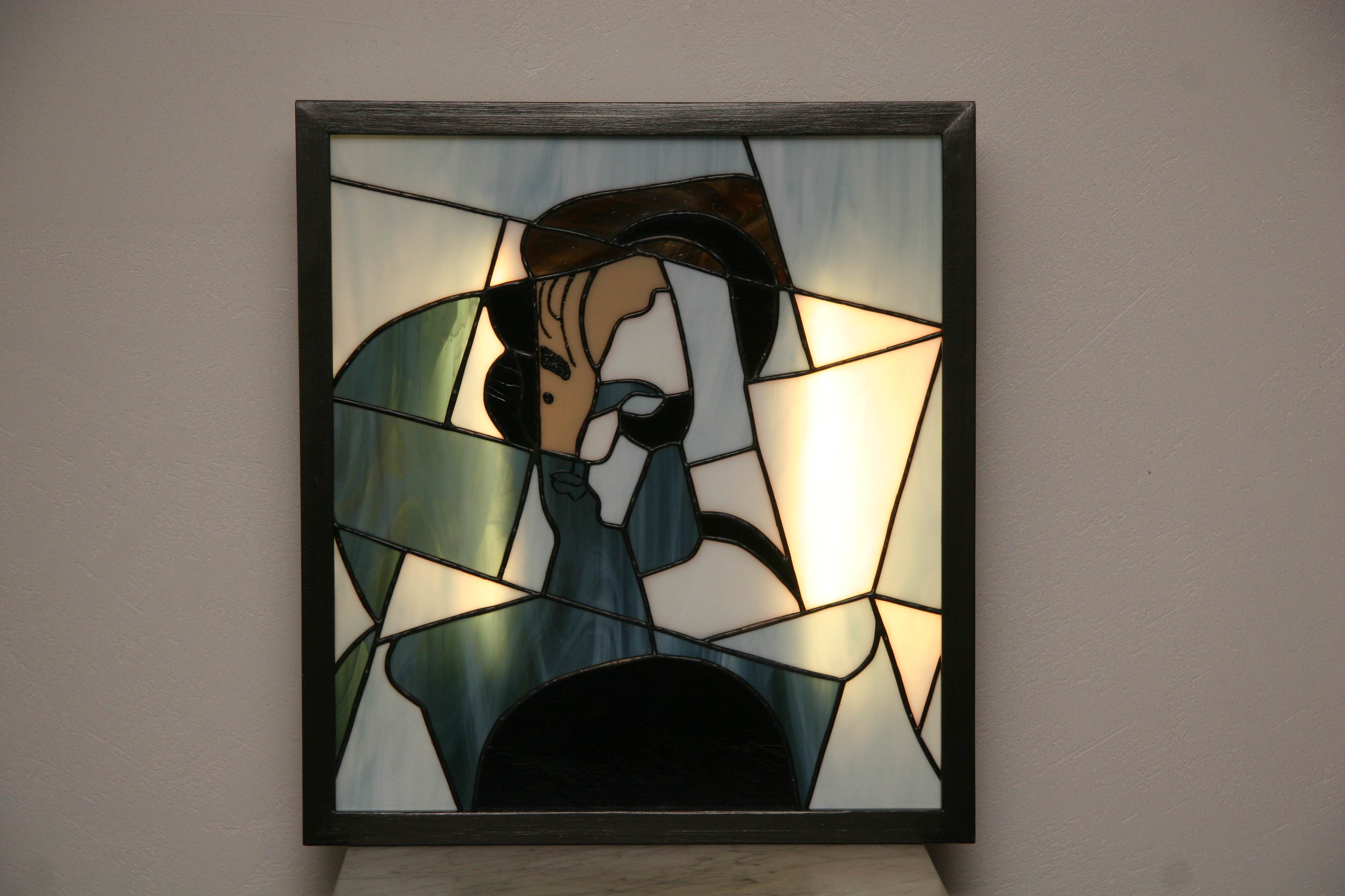 Tableau lumineux en vitrail Tiffany « Le Visage »